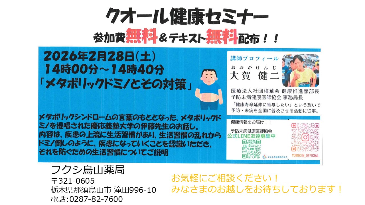 フクシ烏山薬局のお知らせ一覧